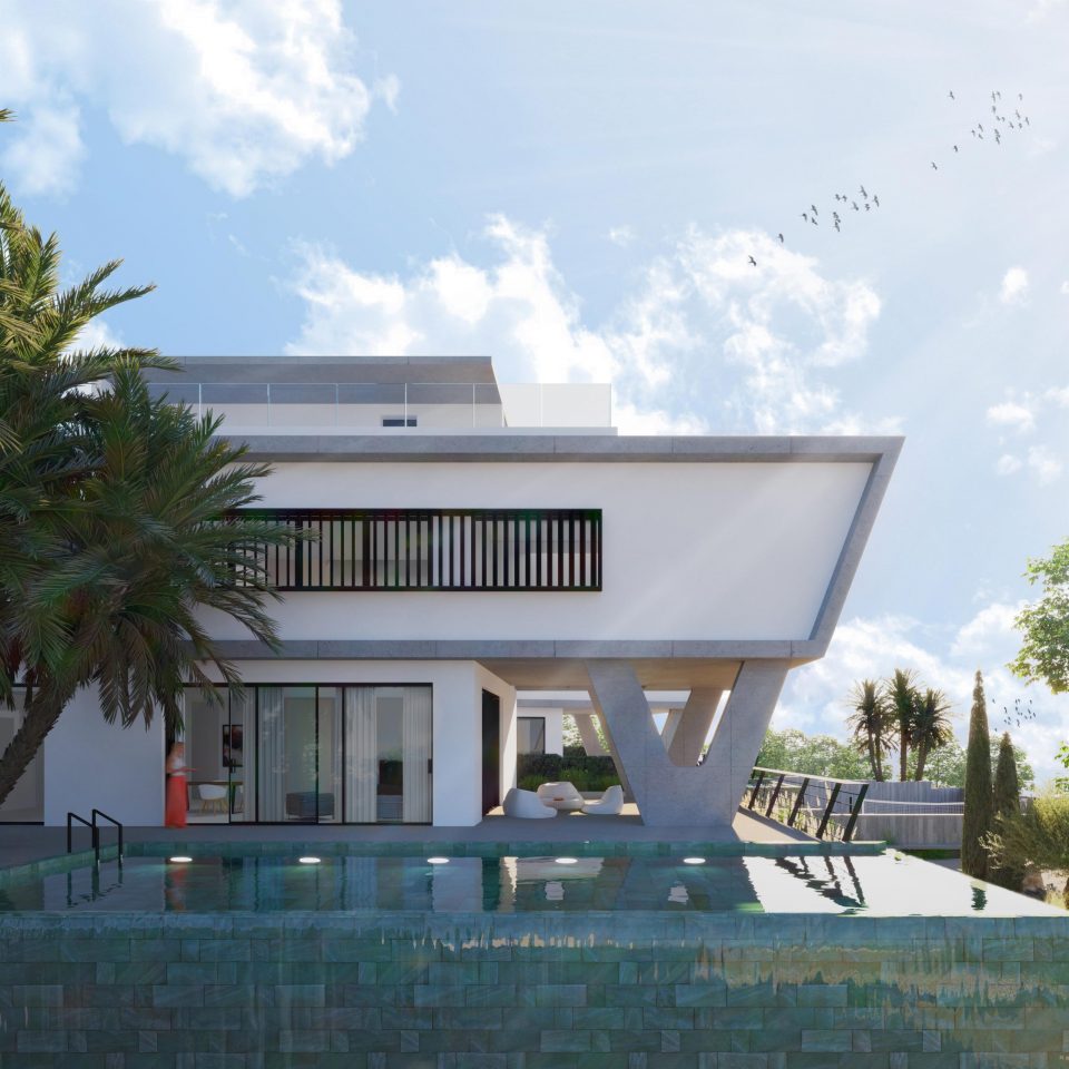 Type: Residential Scope of work: Architecture, Interior Design and Landscape Architecture Stage: Concept Location: Cyprus, Limassol Plot Area: 650 m2 Covered Area: 250 m2 Build Area: 330 m2 Budget: €550.000 Lead Designer: Michalis Patsalosavis Description: Perched on the edge of a cliff in Limassol, this semi-detached residence draws inspiration from the iconic mansions of Beverly Hills,…