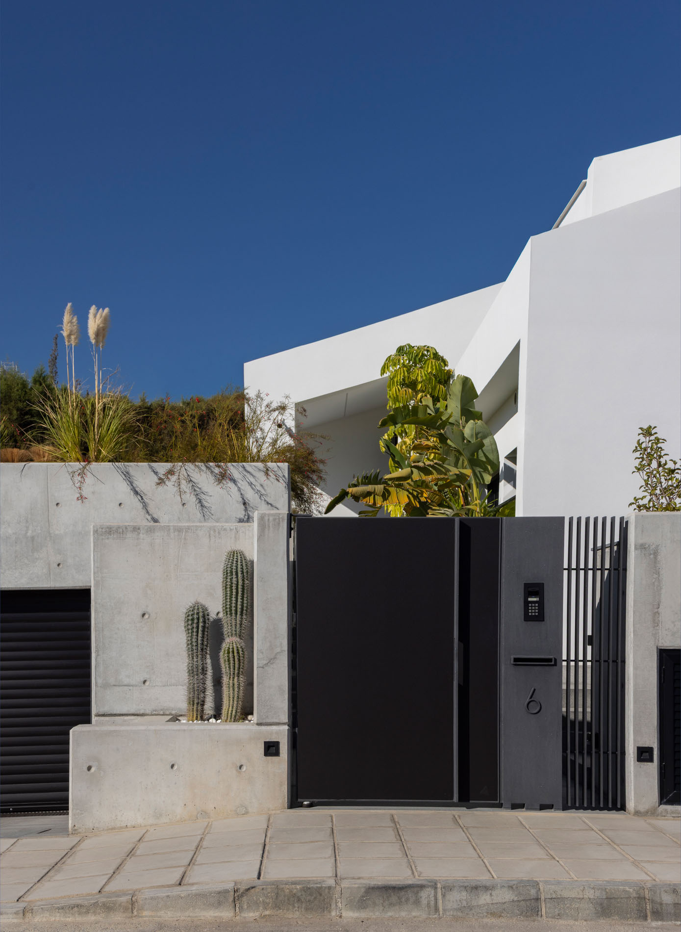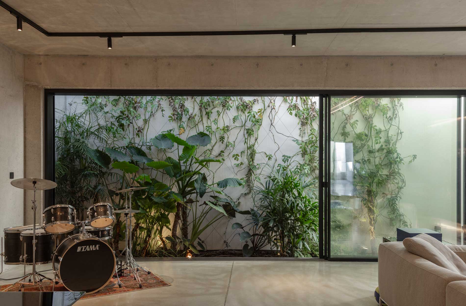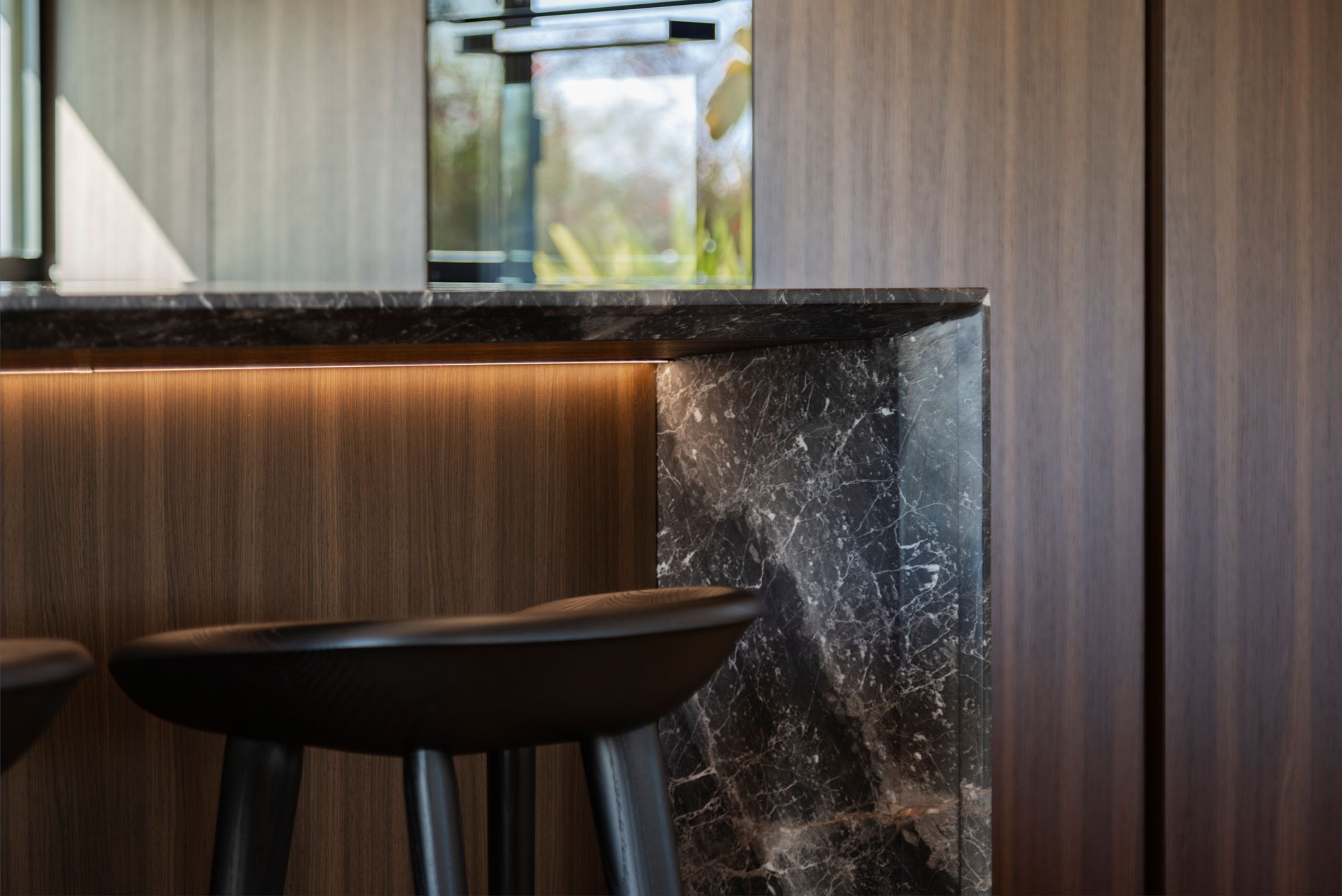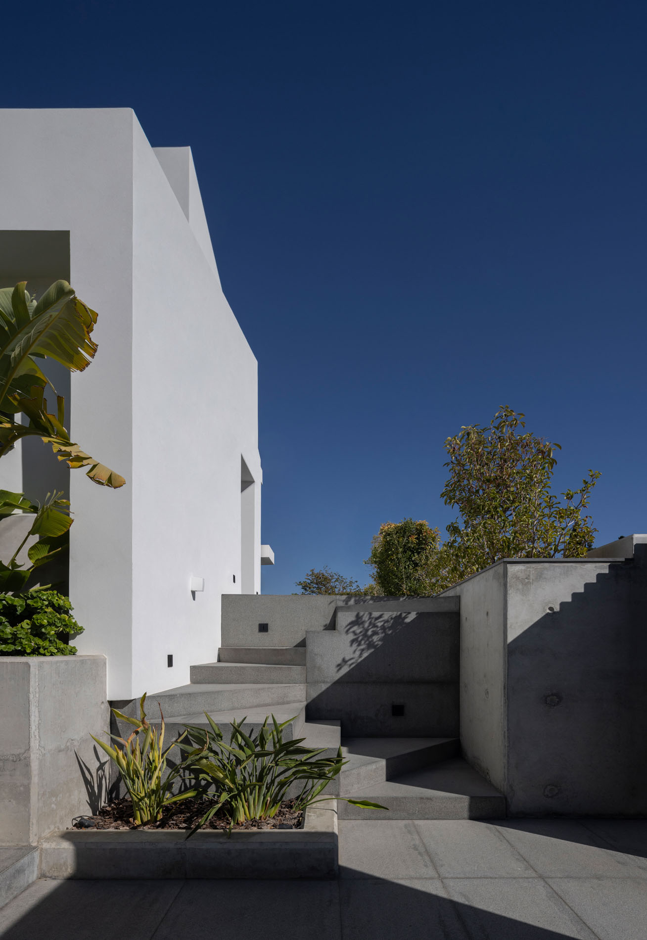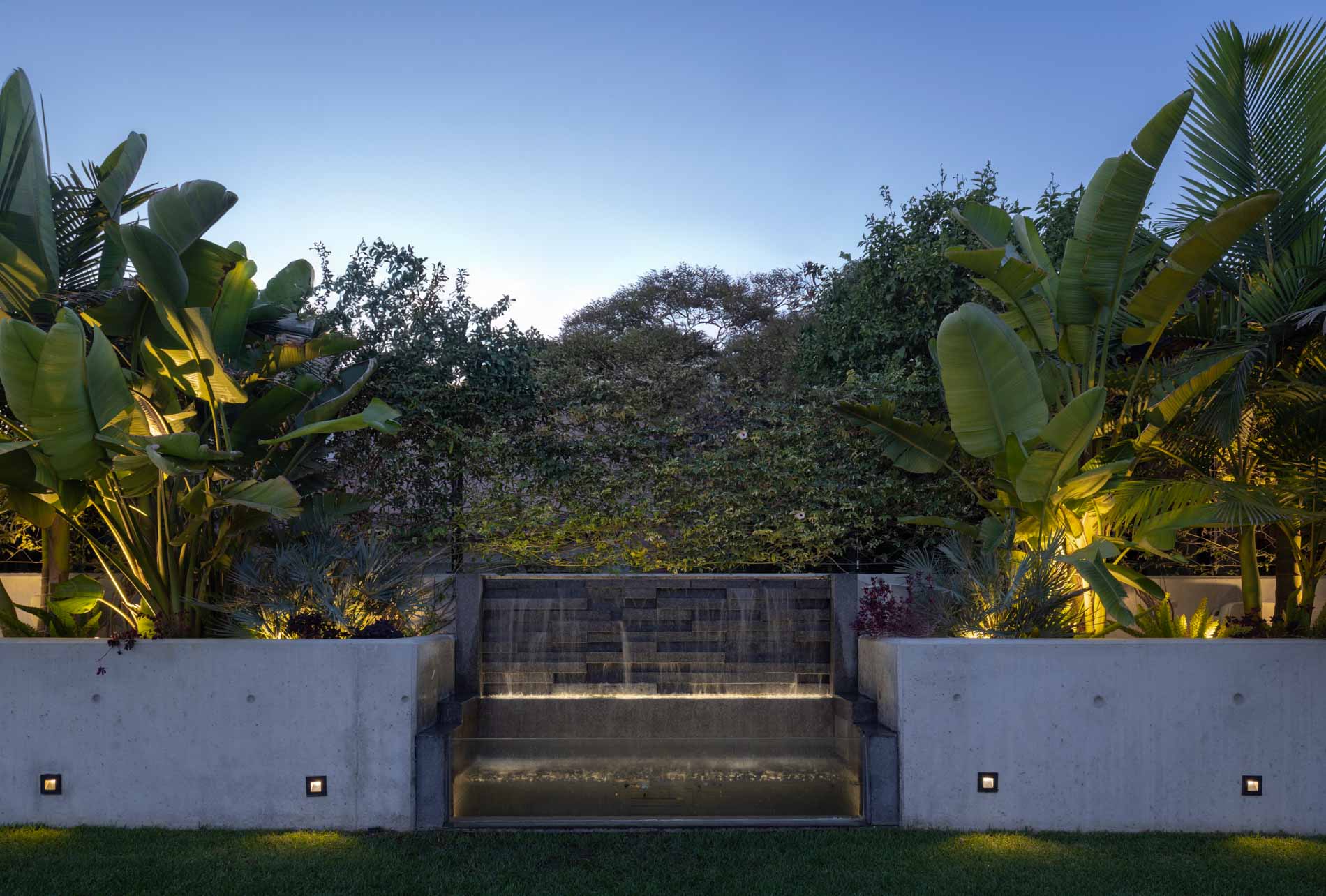 Description:This project involved renovating an existing building constructed in the 1980s and adding a contemporary extension. The ground floor and entrance, situated 2 meters above street level, provided an opportunity to create a lower ground living space and garage, featuring an exotic skylight planter at the rear boundary wall. The extension, made of fair-faced concrete, incorporates raw metal bespoke furniture to achieve an industrial design aesthetic, perfectly complementing the display of two limited edition Harley-Davidson bikes. The terrace above the extension is designed as a green roof with concrete planters and a waterfall fountain. In the existing building, we redesigned the layouts and provided comprehensive interior and lighting design services to modernize and enhance the living spaces.