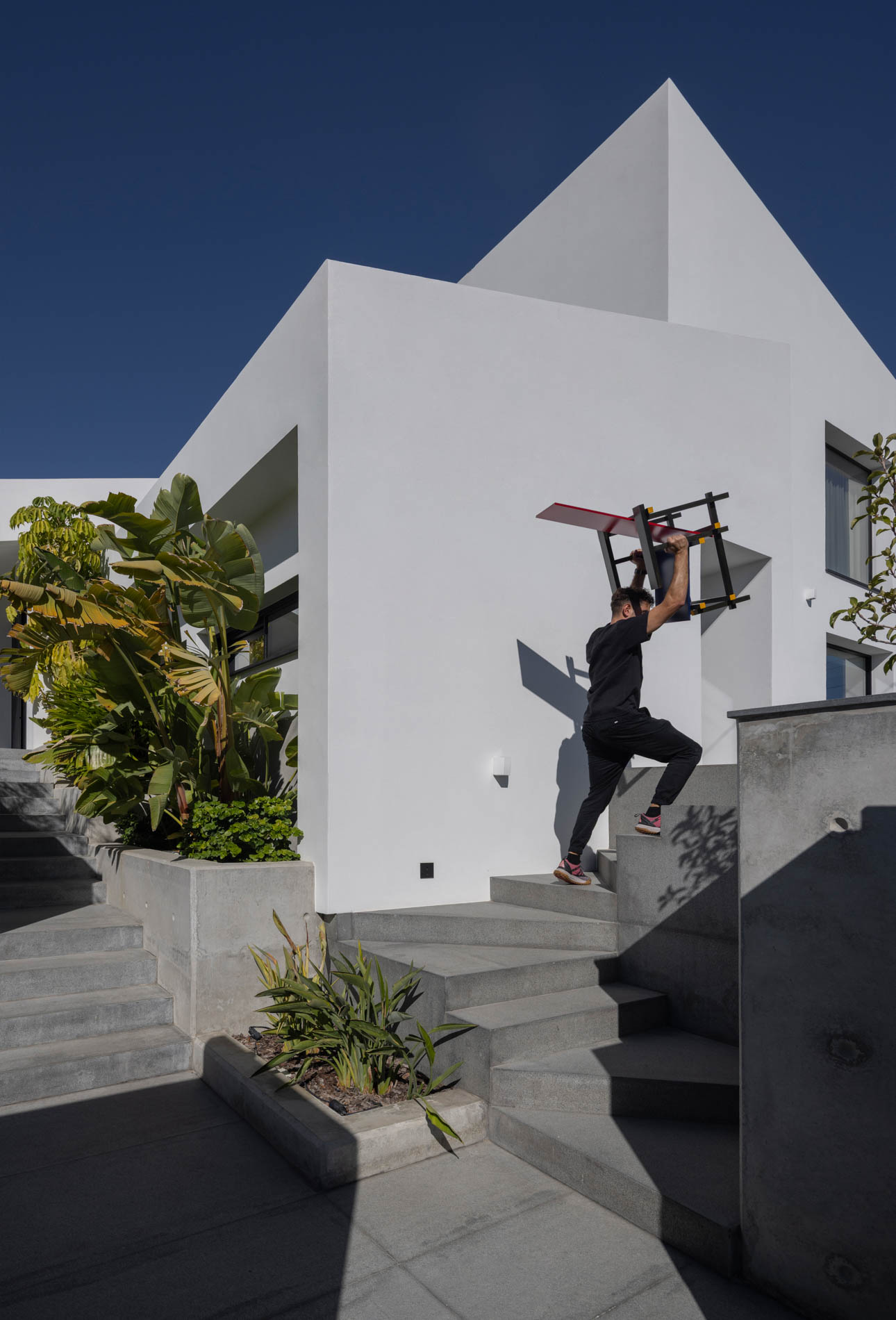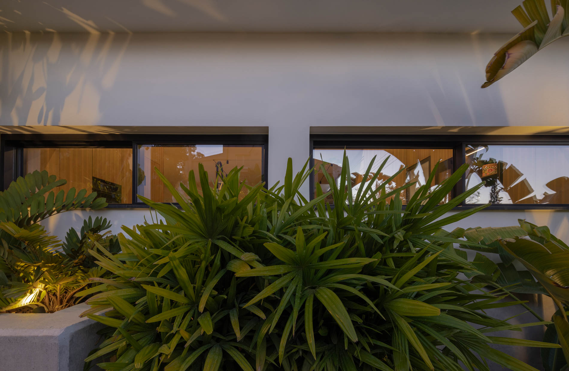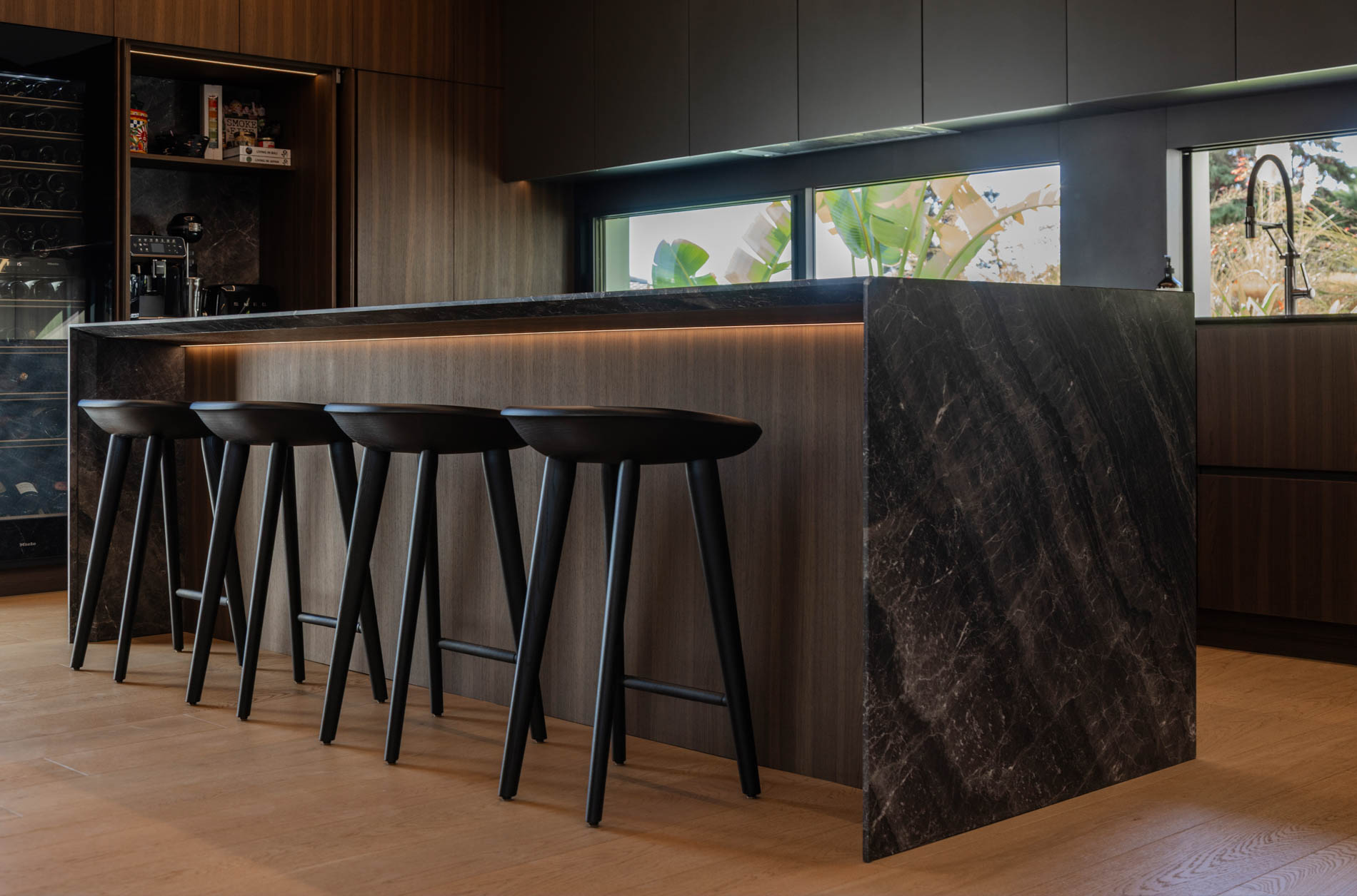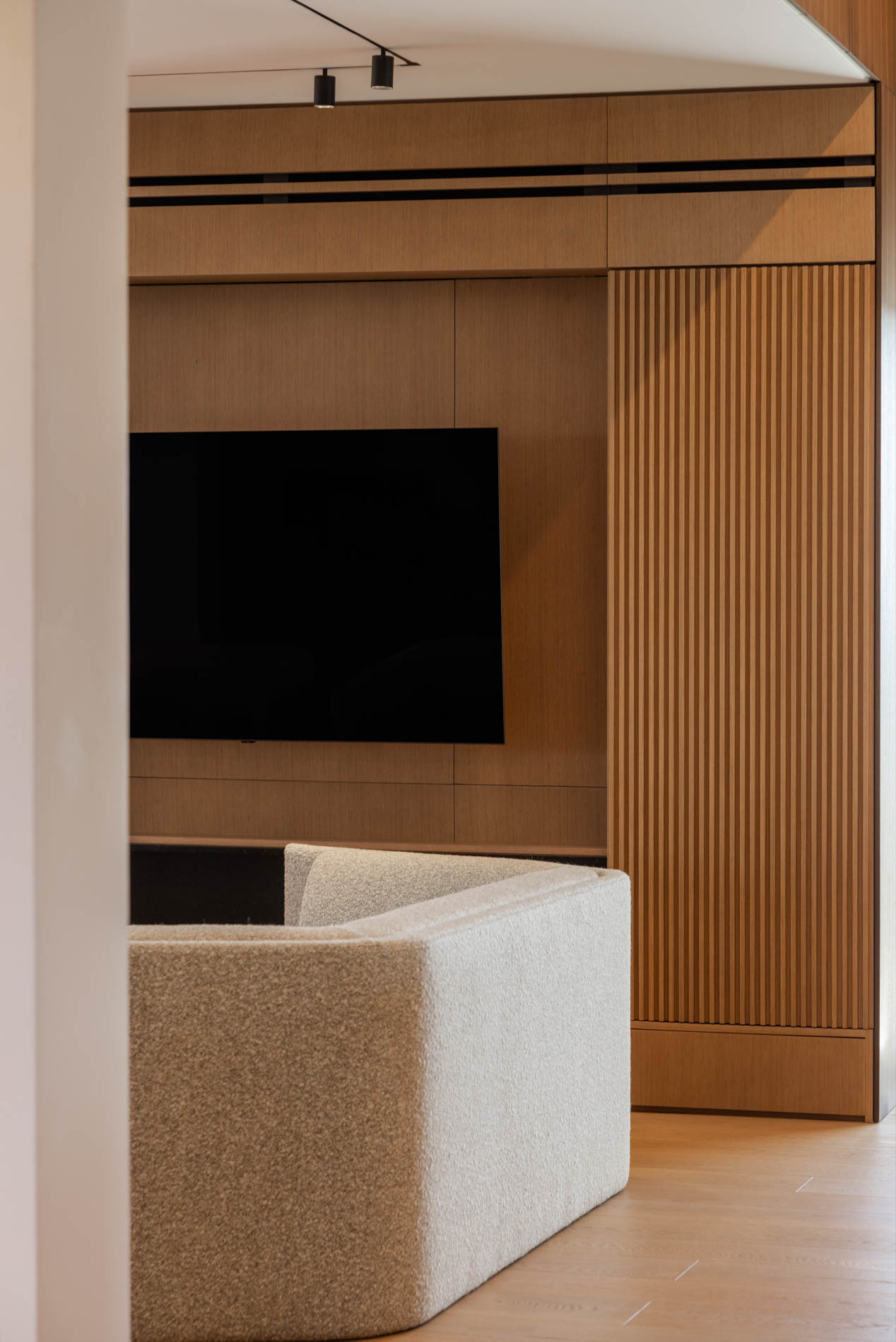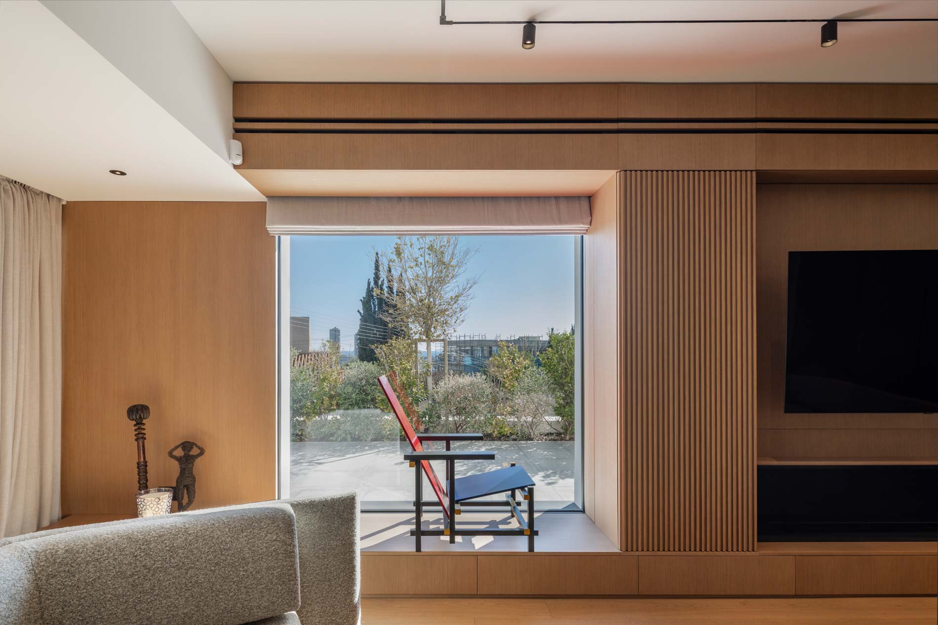 Description:This project involved renovating an existing building constructed in the 1980s and adding a contemporary extension. The ground floor and entrance, situated 2 meters above street level, provided an opportunity to create a lower ground living space and garage, featuring an exotic skylight planter at the rear boundary wall. The extension, made of fair-faced concrete, incorporates raw metal bespoke furniture to achieve an industrial design aesthetic, perfectly complementing the display of two limited edition Harley-Davidson bikes. The terrace above the extension is designed as a green roof with concrete planters and a waterfall fountain. In the existing building, we redesigned the layouts and provided comprehensive interior and lighting design services to modernize and enhance the living spaces.